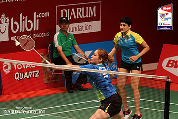 Jwala Gutta/Ashwini Ponnappa (IND) menyambar pengembalian lawan