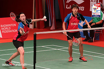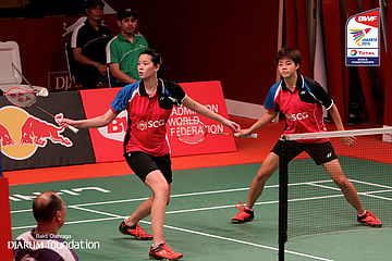 Puttita Supajirakul/Sapsiree Taerattanachai (THA) menahan serangan lawan